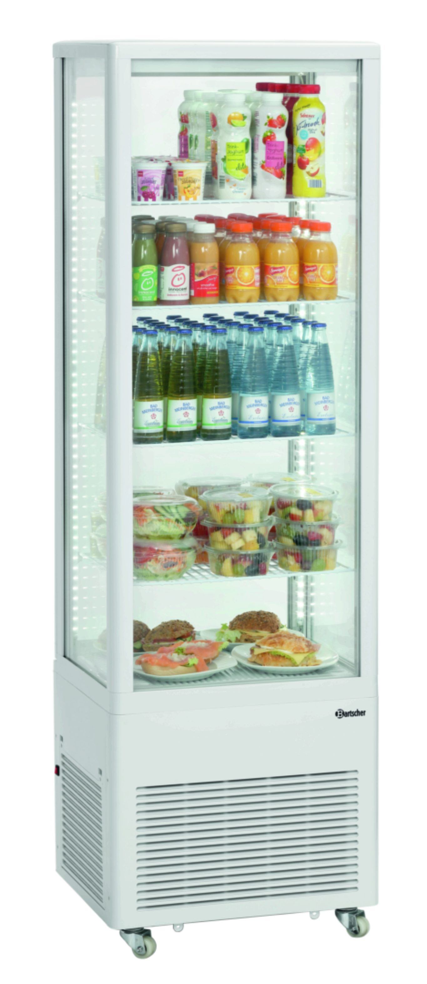 Эта витрина-холодильник большого объема идеально подходит для демонстрации товаров в любом торговом помещении. Колесики с тормозами гарантируют максимальную универсальность применения.
