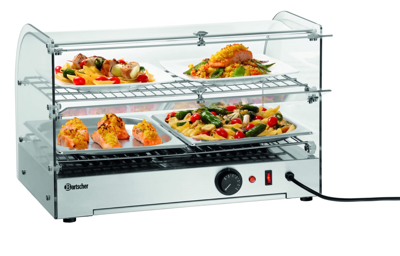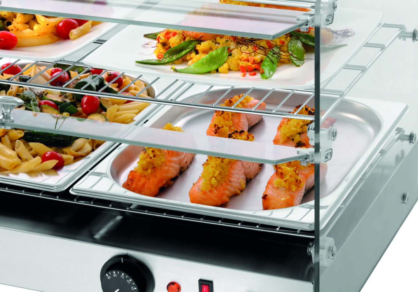 Компактный настольный прибор для поддержания температуры и презентации горячих блюд — оснащен практичной подъемной дверцей.
